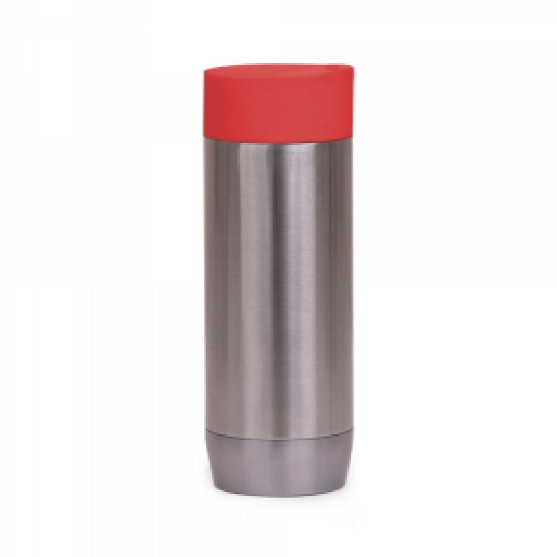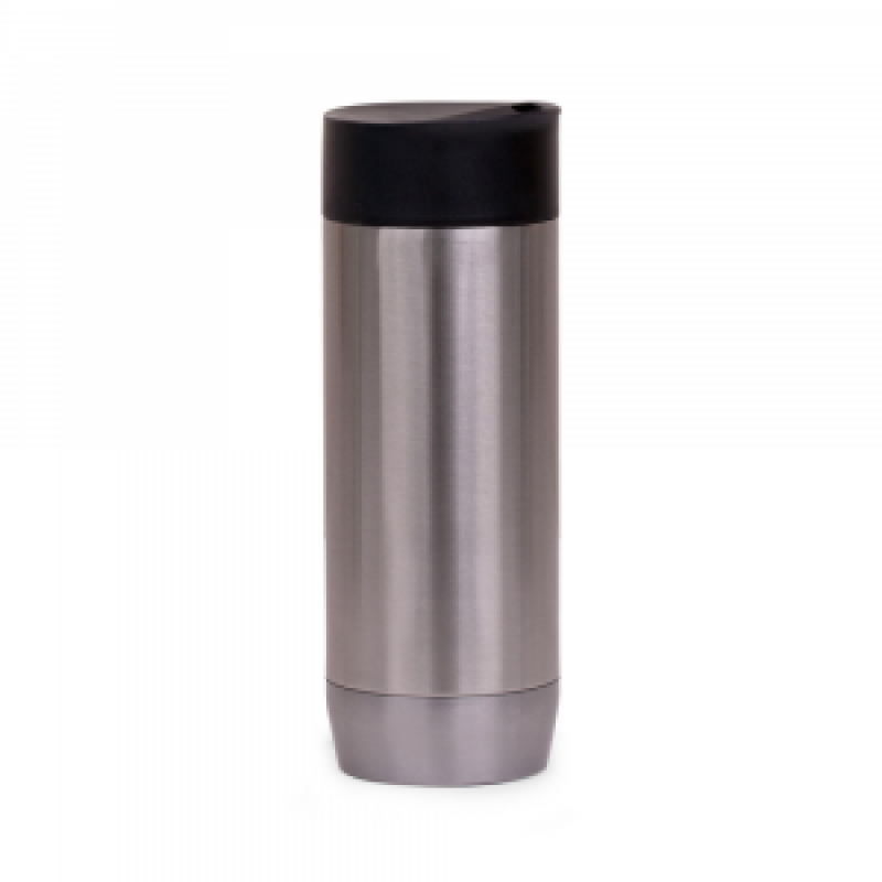 Caneca em aço inox parede dupla de 450ml, conserva temperatura quente ou fria e tampa com vedação.